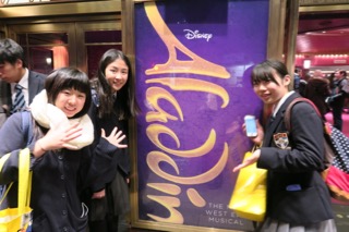 夜は、ミュージカルを観に行きました。今回観たのはディズニーのアラジンです。どうやってジーニーやしゃべる鳥などを表すのかと思っていたけれど、すべて人でやっているにも関わらず、むしろディズニーのアニメより高い完成度で、さすがイギリスだなと思いました。歌やダンスも、キラキラしていて、初めてミュージカルをみた私にとって衝撃でした。
