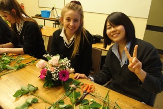 今回の交換留学ではたくさんの思い出が作れたが、多すぎるので一部を紹介しようと思う。まず会って一日目。お互い緊張していた。なにを話せばいいのかわからず、とりあえず趣味などを聞くことから始まった。そうこうするうちにすぐ仲良くなることができ、二日目には恋バナで盛り上がり、女子が恋バナを好きなのは世界共通なんだなと思った。そのあと交換留学のプログラムの一貫でバディーの子とフラワーアレンジメントをするという企画があった。私はフラワーアレンジメントを体験するのが始めてでエロイスも同じく初だった。お互い初心者なのでどう作ればいいのかわからず試行錯誤した。まずフラワーアレンジメントなのにオアシスに茎だけを刺したり、臨場感を出すためとか言って花びらを散らしたりした。ついには茎でちゃんばらをしたりした。先生やフラワーアレンジメントの先輩にはあきれられたがこれが涙が出るほど楽しかった。お互いふざけあって、心の底から笑い、国籍という壁を乗り越えた気がした。