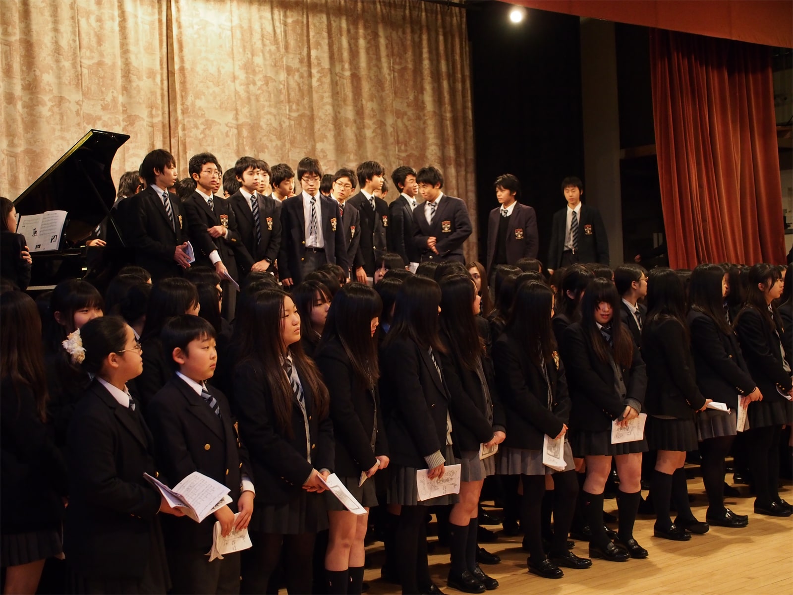 ステージの大きなクリスマスツリーも魅了されたスクールコンサート。