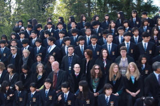 2時間目終了後、中庭に集合。クラス毎に整列した後、まずは高校3年生から、そしてその後全学年が背の順に並んで撮影場所に向かいます。