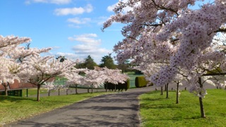この桜の木々は、むかしむかし遠く日本から輸入してきたもの。