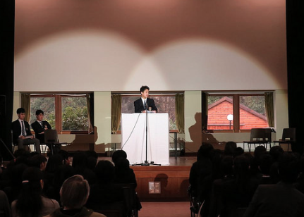 そしてそれに続いて候補者は、立候補表明と抱負を述べ、さらに自分が選ばれた場合の公約を全校生徒に伝えます。