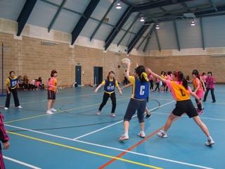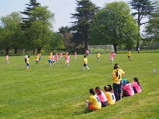 球技大会当日は朝から快晴。風もなく、入学式の時には満開だった桜の花がはらはらと優しく散る中、体育館、テニスコート、サッカーピッチ、フィールドの各場所に分かれて、黄色チームとピンクチームの壮大な闘いが始まりました。各種目とも午前と午後に1回ずつ試合があります。そしてその間も少しの時間を見つけてはチームで練習をしたり、他の種目の場所に行って大声で応援したりします。昼休み後は二週間の練習の合間にみんなで考えた応援合戦を披露… そして、全ての試合が始まる前には「球技」ではありませんが、毎年恒例、高校2年生体育委員が知恵を絞って作ったオリジナル団体競技もありました。丸一日、児童生徒たちが精一杯頑張る様子を、ロンドンはじめ遠方から来てくださった保護者の方々が応援してくださったのも子供達には大きな励みになったと思います。