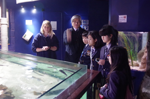 定期試験のない小学部では、期末試験期間を利用して毎学期外出をしています。この2学期末は、11月28日(金)にイギリス南部の大きな港町Portsmouthへ出かけました。午前中は水族館を訪れ、サメやエイ、そして熱帯の海に生息する魚たち、また、小さいときに家庭で飼い始め、大きくなってしまって水族館に引き取られたカメなど、たくさんの生き物を見学したり、水族館の方の説明を伺ったりしてきました。
