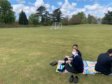 P5・P6合同野外授業(国語) 2021年05月17日 イギリスでは、徐々に気候も安定し暖かくなってきたため、第1回合同野外授業を実施しました。今回の内容は、「図書館で自分の好きな本を選び、太陽の下で読書をしよう」です。 児童たちはそれぞれ自分の世界に入り、集中して読書に励んでいました。今回の野外授業をきっかけに読書習慣をさらに身につけてほしいと思います。